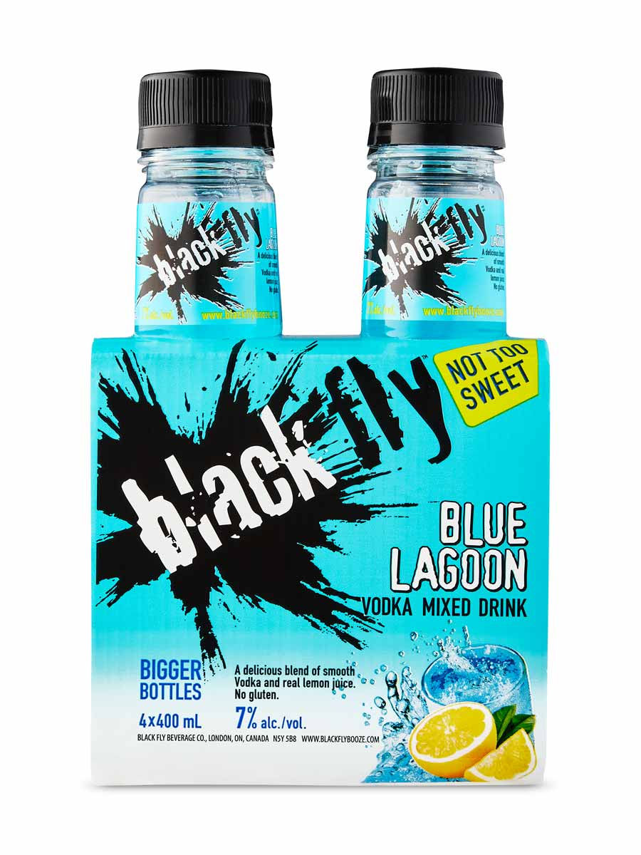 Boldly blue and bursting with flavour, Black Fly Vodka Blue Lagoon?is a sweet, tart, and totally refreshing cocktail-to-go. Flavours of lemon-lime and juicy, blue raspberry enliven the palate, complemented by a not-too-sweet finish. Enjoy it extra-chilled or even freeze it right it in the bottle.