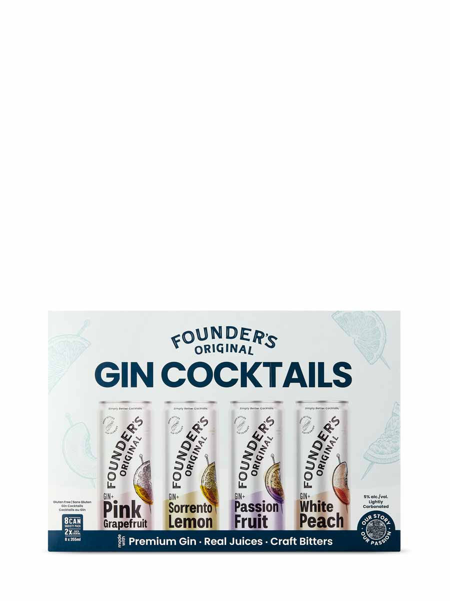 In this premium variety pack, Founder’s delivers a selection of four modern gin cocktails. Included are 2 cans each of cocktails featuring premium gin paired with pink grapefruit, Sorrento lemon, passionfruit, and white peach. These vibrant, fruity cocktails are great anytime, from parties to pizza night.