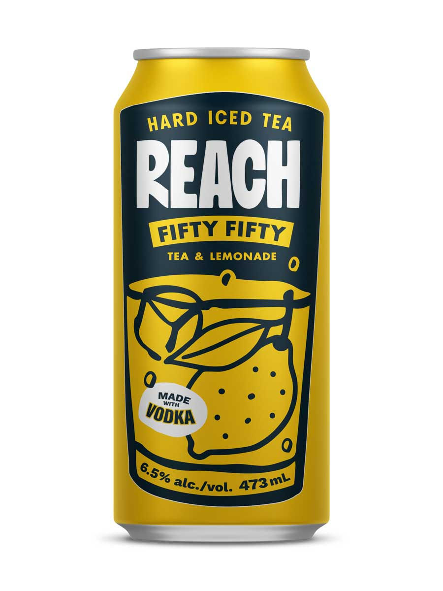 Reach Hard Iced Teas are made with brewed black tea and Ontario vodka, combined with natural flavours. The Fifty-Fifty Hard Iced Tea is a blend of half tea and lemonade, mixed with local Niagara vodka. It’s crisp and refreshing, with light carbonation and a perfect balance of tart and sweet lemon flavours.