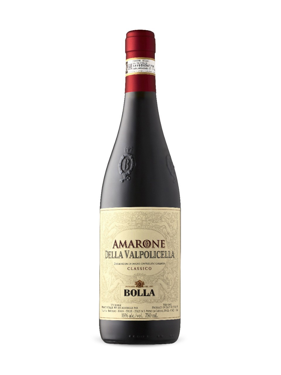 Produced only in exceptional years from select grapes, this Amarone emanates richness. The deep garnet colour is brimming with notes of wild-cherry jam, fig and spice. The palate is dry, round and dominated by flavours of black cherry, cocoa and spice that persist to the finish.